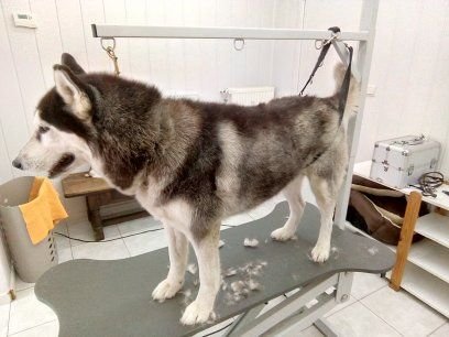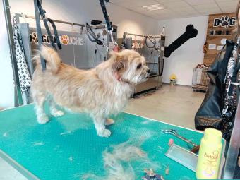 Ma petite Bianca de 4mois ne connaissait ni le bain ni le séchoir et je n’étais pas à l’aise pour la déposer dans un salon…